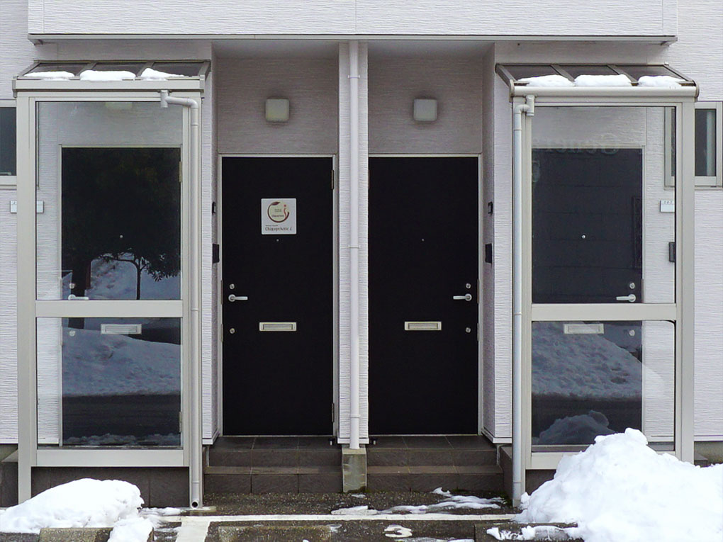 カイロプラクティックiのロゴが掲示されたドアよりお入りください。